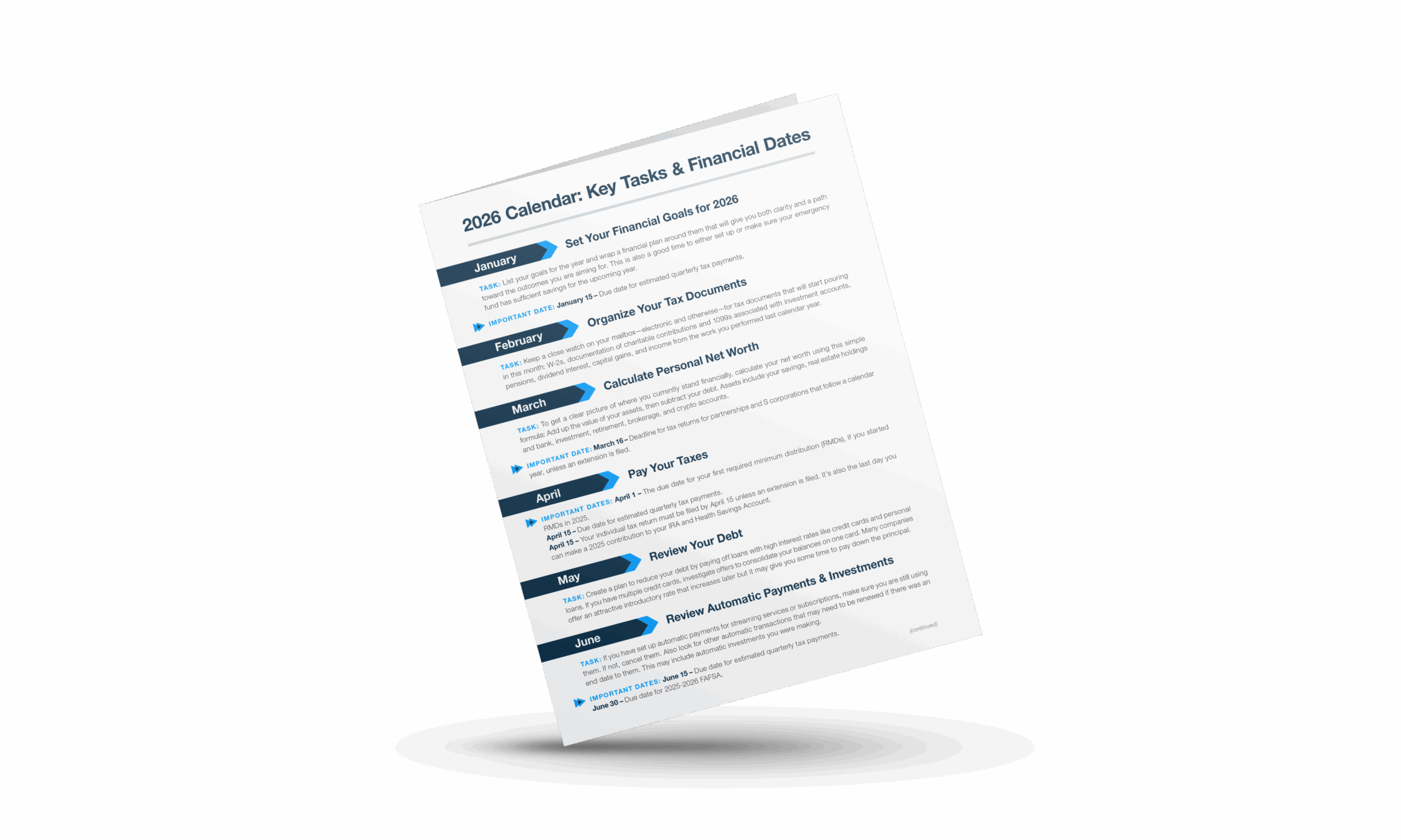 Get ready to tackle 2026 with this month-by-month financial task list. We’ve also included important dates so you won’t miss key deadlines. Download the checklist today to get started.